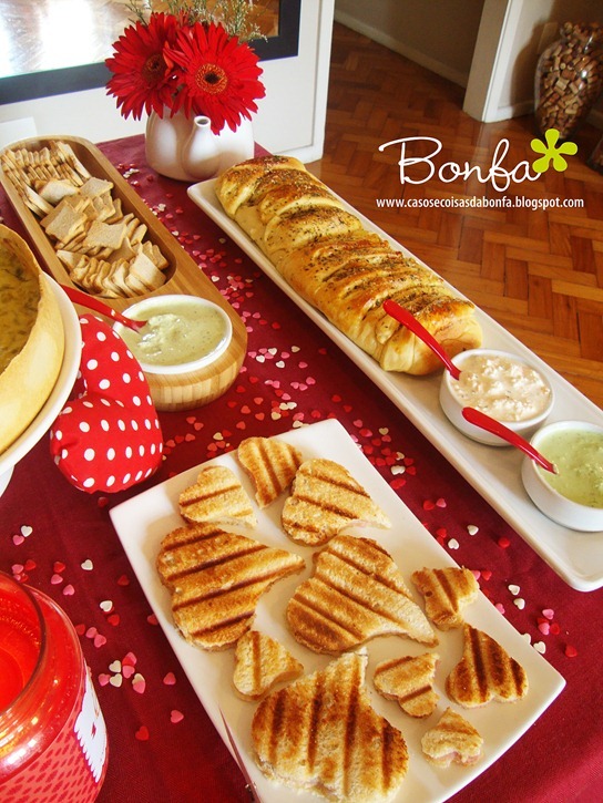 Que luxo....fico até com vergonha de ficar te mostrando minhas reuniões....Será que um dia chego no seu grau de excelência????? Os lanches de coração ficaram ótimos heim? Comprei aqueles pegadores de petiscos na 25 de março. Lá tem ótimos achados pra quem gosta de bater perna e garimpar....risos