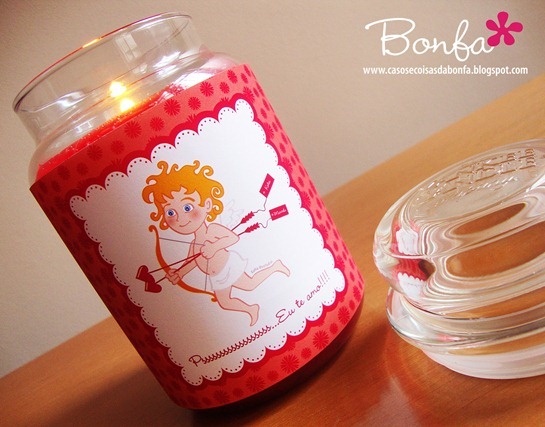 Depois de terminar a ilustração que preparei especialmente para esse evento e mostrei primeiro AQUI, apliquei-a em algumas superfícies, como por exemplo, no pote que abriga uma vela aromatizada com perfume de cereja. Bastou retirar o rótulo original e fixar a impressão no vidro com o auxílio de cola spray.