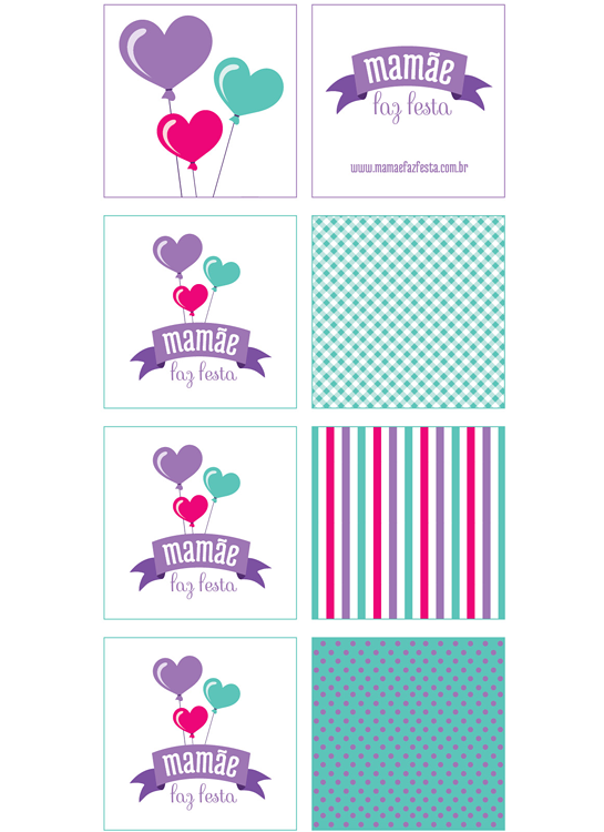 Combinei os dois tons sugeridos pela cliente (azul Tiffany e lilás) com o pink, que usei para fazer contraste e “aquecer” as cores frias, tornando o conjunto mais alegre. Sugeri uma versão com moldura para, entre outras aplicações, ser usada sobre fundos de cor, padronagens ou imagens; outra sem esse complemento e uma terceira assinatura simples.