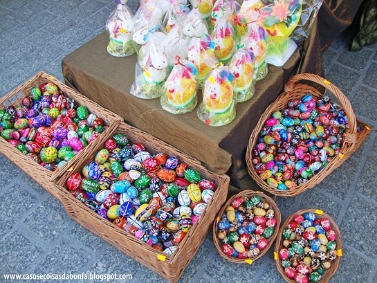 Os ovos pintados são um capítulo à parte. Existem várias técnicas para decorá-los, incluindo o uso de cera de abelha, de flores, folhas e animais recortados em papel colorido e de miçangas formando padrões geométricos. Para quem tiver a curiosidade de ver alguns lindos exemplos desses ovos decorados, basta clicar AQUI.