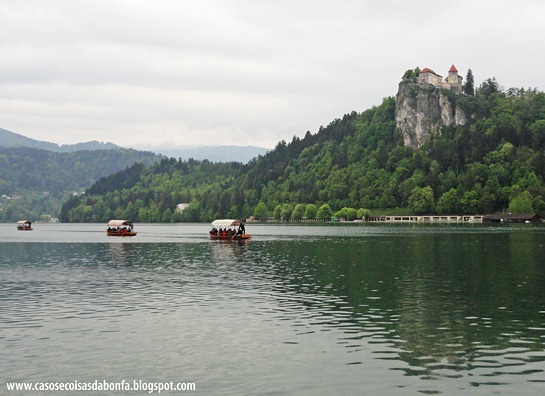 Nossa parada seguinte foi o charmosíssimo e inesquecível município de Bled, na Eslovênia. Que lugar fantástico!!!!! Basta dizer que suas atrações principais são um lago glacial com águas cor de esmeralda que abriga uma ilhota onde foi construída uma igrejinha acessível somente por barco à remo, e um castelo medieval localizado à beira de um penhasco.