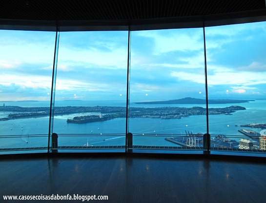 No final da tarde, decidimos subir a Sky Tower para ver o pôr do sol lá de cima e apreciar belas vistas de Auckland com luz natural e também com iluminação noturna.