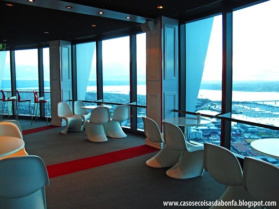 O bar é o único restaurante giratório da Nova Zelândia e em 1 hora ele dá a volta completa em torno de seu eixo. Nós pensamos que o lugar estaria lotado, mas para nossa surpresa, não havia quase ninguém. Pedimos algumas cervejas e ficamos algum tempo por lá apreciando a vista.