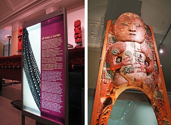 O térreo abriga uma vasta coleção de arte maori, que inclui desde construções residenciais e cerimoniais originais até canoas, estatuário, vestimentas, ferramentas de caça e pesca, utensílios culinários etc.