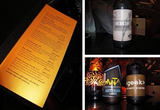 Havia várias cervejas on tap (chopp) e muitas outras em garrafas. O Marcelo gosta mais de chopp, mas eu não vejo grandes diferenças e várias vezes prefiro a versão engarrafada. Adorei essa SUPER CONDUCTOR da cervejaria 8 WIRED. Ela tem amargor pronunciado e foi nesse bar que descobri que gosto de “hoppy beers” ou, traduzindo, cervejas com bastante lúpulo. Da mesma marca, havíamos provado a THE BIG SMOKE no Andrew Andrew, uma saborosa porter defumada com aroma de chocolate.
