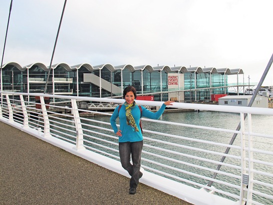 Atrás de mim na foto acima, vocês podem ver o Viaduct Events Centre, um espaço coberto com 6 mil metros quadrados que abriga exposições, convenções, jantares de gala e eventos como o New Zealand Fashion Week.