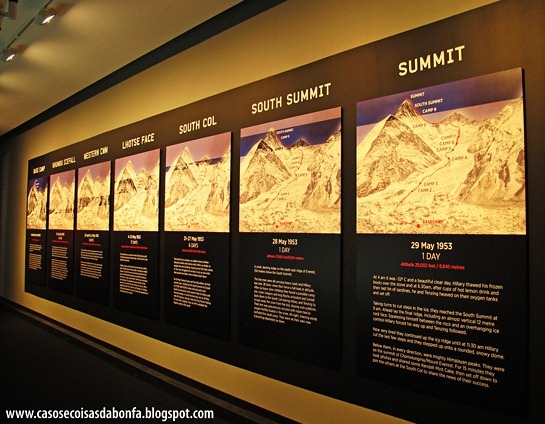 Visitamos também uma exibição temporária que foi montada para comemorar os 60 anos da chegada dos primeiros homens ao Everest, o inglês Sir Edmund Hillary e o sherpa Tenzing Norgay.