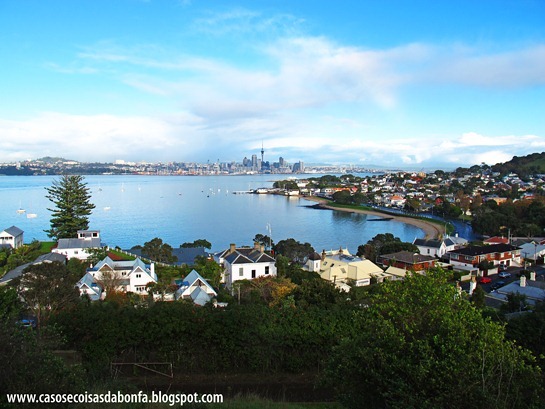 Ao contrário do que imaginávamos, os funcionários da imigração na Nova Zelândia não nos pediram documento nenhum. Percebemos que os australianos são mais exigentes nesse sentido. Compramos bilhetes para o ônibus do aeroporto (Airbus) que nos levou até o centro da cidade. Largamos as mochilas no hotel e saímos para passear um pouco. Em Cairns usamos bermuda, camiseta e chinelos, mas em Auckland estava frio… um friozinho gostoso como o do inverno paulistano… minha temperatura ideal!