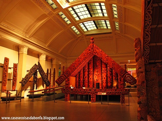 Já eram quase 17h e o museu fecharia dali a meia hora. Então nos deixaram entrar de graça desde que ficássemos só na parte térrea. O espaço é enorme e nem conseguimos ver tudo o que havia nessa área que visitamos. Mas gostamos bastante do acervo e voltamos ao museu no nosso último dia em Auckland.