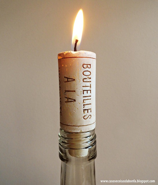 O conjunto de quatro velas foi um presente da minha mãe, que as comprou em uma vinícola na Califórnia. O legal é que todo mundo fica curioso querendo saber como é que eu acendi a rolha, rsrsrs!!!!