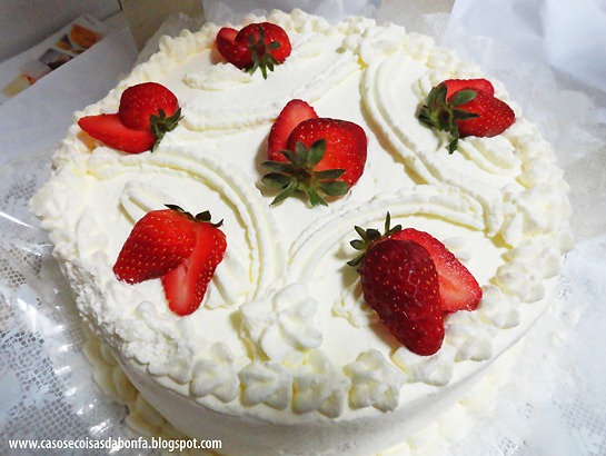 Depois da raclete com batata rosti, chegou a hora da sobremesa, mas como normalmente não comemos doces em casa, esquecemos de providenciar algo açucarado para os convidados, que poderia bem ser uma barra de chocolate suíço.… felizmente, uma das convidadas trouxe uma deliciosa torta de morango com chantilly que combinou com as cores da festa, rsrsrs! Estava pouco doce e bem molhadinha, do jeito que eu gosto!