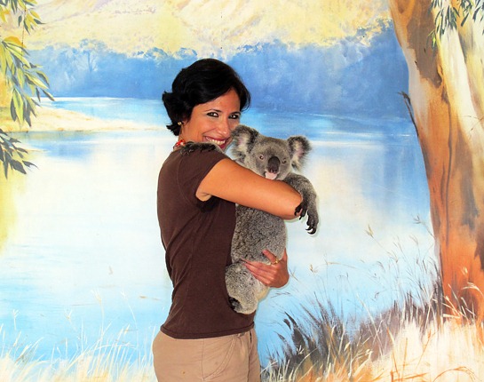 O coala que segurei era fêmea e, segundo sua tratadora, dorme de 14 a 21 horas por dia! O resto do tempo em que passa acordada, aproveita para comer folhas de eucalipto.