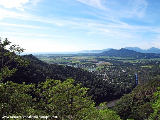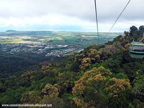 No retorno a Cairns, preferimos pegar o teleférico para observar a generosa e exuberante floresta tropical de um ângulo privilegiado. No trajeto há dois pontos onde é possível descer e caminhar mata adentro por trilhas suspensas, além de um pequeno museu educativo que apresenta fotos e informações sobre a fauna e flora locais.