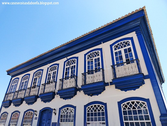 Bela fachada pintada com a tradicional combinação de azul e branco