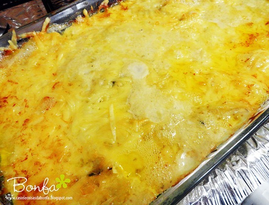 Pessoal, eu achei que tinha exagerado na pimenta (como sempre, eu não aprendo!!!!) e, quando levei as batatas ao forno, tentei corrigir isso por meio do acréscimo de leite integral. Pra minha alegria, deu certo e acho que não faltou nem sobrou tempero.