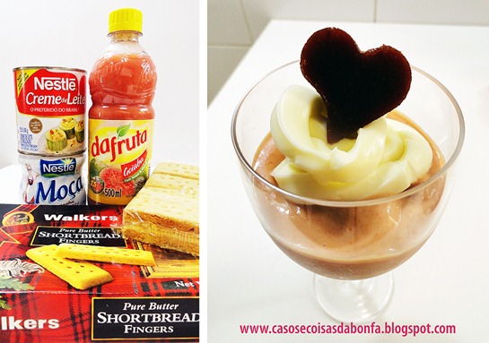 Pensei comigo mesma: “se deu certo com a mousse de maracujá, deve dar certo com a mousse de goiaba que planejo fazer, né”? Sendo assim, separei os ingredientes que precisava (uma lata de creme de leite, uma lata de leite condensado, a mesma medida de suco de goiaba concentrado e um punhado de biscoitos amanteigados) e segui em frente.