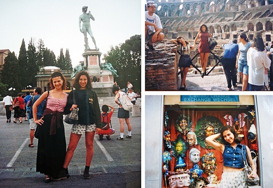 Eu e minha irmã Flávia em Florença, Roma (Coliseu) e Veneza - Itália, 1996