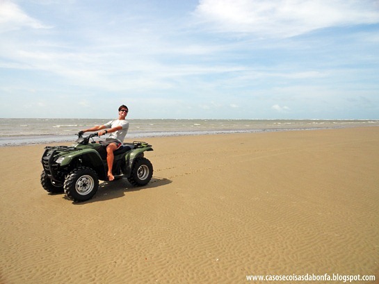 E lá ficamos curtindo a extensa e bela praia, até que o Marcelo resolveu alugar um quadriciclo (ATV) por meia hora pra ir até a pontinha da península, na foz do rio.