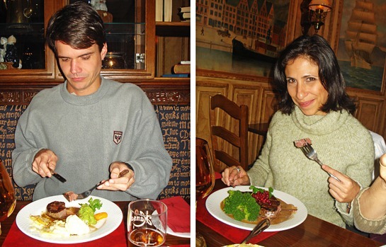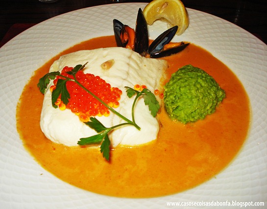 Como estávamos na Noruega, pensei logo em pedir um prato de bacalhau, o que foi desaconselhado pelo nosso guia. Segundo ele, se a gente gosta dos pratos de bacalhau portugueses, não vale a pena experimentar um prato típico norueguês, que tem muito menos tempero e poucos acompanhamentos. Parece que o bacalhau em si é de boa qualidade, mas a maneira de cozinhá-lo é meio sem graça.