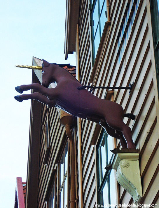Dizem que o mercado de peixe de Bergen é uma parada obrigatória para os turistas. Segundo minha pesquisa, trata-se de um local animado nos dias de verão, mas no domingo de outono em que estivemos lá, estava bem calminho. Vimos poucas barracas que vendiam uma variada gama de peixes e mariscos, incluindo uma espécie de salame de baleia. Antes de tirar a foto acima, conversei com o atendente de uma das barracas, que era português e estava há algum tempo morando na Noruega. Como eu adoro bater um papo, perguntei o que ele achava do país, do clima etc., e ele disse estar gostando da experiência, apesar do incômodo dos dias frios e curtos e da dificuldade com o idioma.