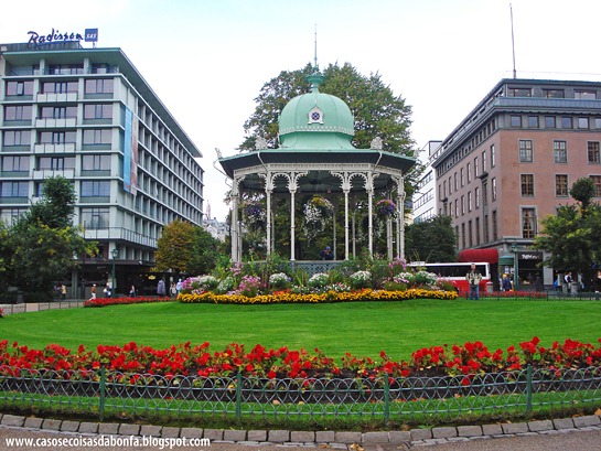 Os delicados jardins da praça Torgallmenning