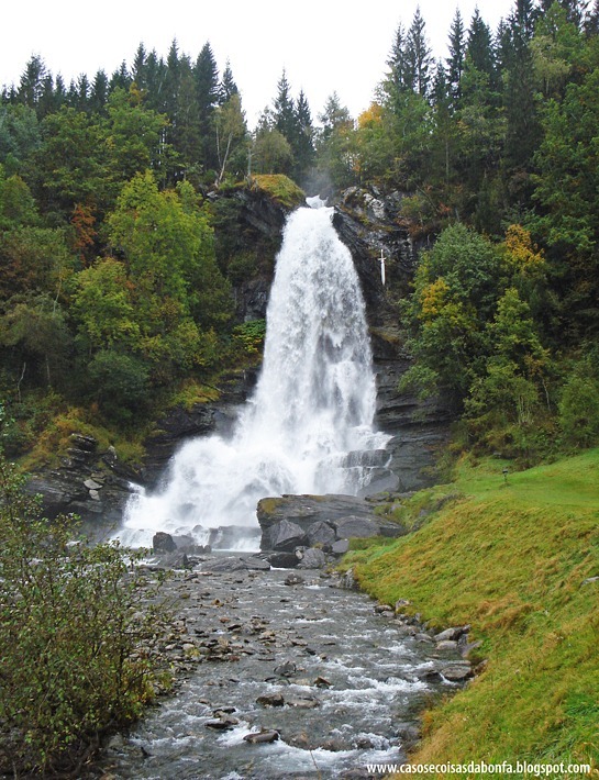 Logo depois de deixarmos Bergen, o ônibus parou nessa cachoeira para tirarmos algumas fotos. Nós havíamos visto quedas d’água bem mais impressionantes nos fiordes, mas essa possuía um detalhe curioso: o desenho de uma espada estampado na rocha. Infelizmente, não consegui descobrir o nome dessa atração turística onde permanecemos por alguns minutos antes de seguir adiante.