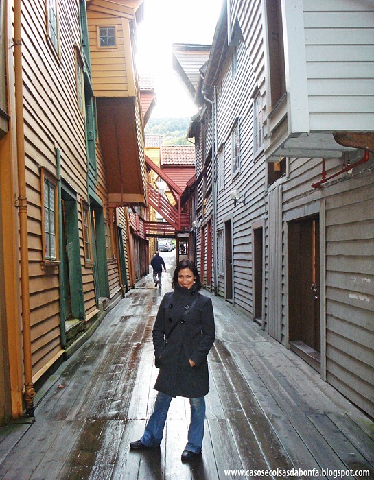 Entrando em uma das ruelas de Bryggen, é possível ter uma ideia de como Bergen deveria ser na Idade Média.