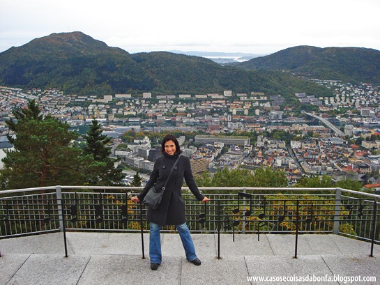 Quando o passeio com o grupo da excursão terminou, eu e o Marcelo subimos o Monte Fløyen por um funicular e lá de cima apreciamos belas vistas da cidade.