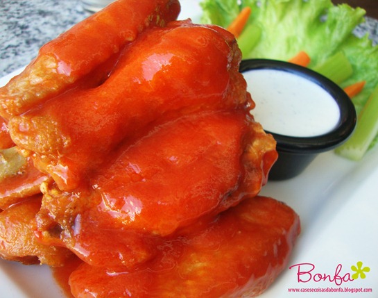 O Didi pediu Chicken Wings com molho picante e eu optei por um hamburguer especial feito com carne KOBE que estava delicioso!!!! Meus pais preferiram pedir um prato de peixe com batatas fritas cobertas de alho cru raladinho. Adorei essa ideia e pretendo reproduzi-la em casa algum dia!!!!