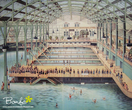 Adolph Heinrich Joseph Sutro foi prefeito de São Francisco de 1894 até 1896. Ele nasceu em Aachen, na Alemanha (Oi, Angie!!!!) e foi um visionário. Existem várias atrações turísticas na cidade que levam seu nome, incluindo SUTRO BATHS, que me chamaram a atenção pela grandiosidade do empreendimento. Tratava-se de um gigantesco complexo de piscinas contruído no final do século 19. Hoje em dia só restam ruínas, mas mesmo assim eu achei o passeio imperdível e, por meio da ilustração acima, fotografada dentro da CLIFF HOUSE, vocês podem constatar a genialidade da obra.