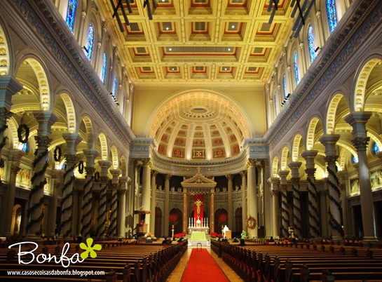 Adoro fotografar o interior de igrejas e templos. Acho que a combinação do pé-direito altíssimo com os bancos simétricos enfileirados, os detalhes arquitetônicos como arcos e colunas, o silêncio, os vitrais e a luz que entra através deles colorindo o ambiente possuem algo de mágico…
