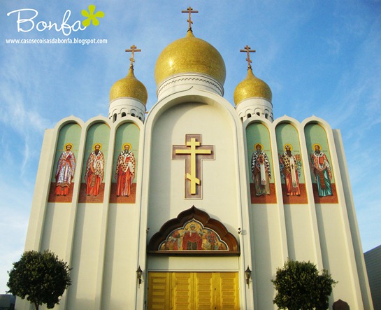 Avançando um pouco mais pela CLEMENT STREET, avistamos a IGREJA ORTODOXA RUSSA que, infelizmente, estava fechada. Mas já valeu a pena fotografar a bela fachada com suas cúpulas e portas bem douradas.