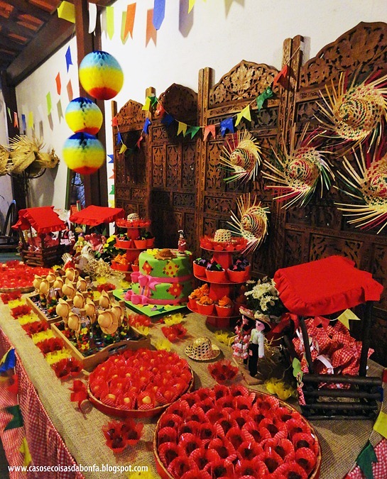 Comecei a pensar na decoração depois de imprimir alguns itens do kit digital FESTA CAIPIRA, que usei para colorir e alegrar o buffet de guloseimas.