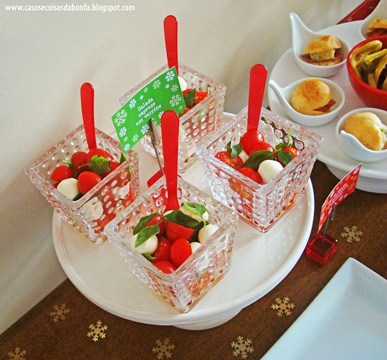 Eu postei a decoração natalina do meu buffet AQUI, influenciada pela querida Maria Tais, e hoje vim complementar a publicação, mostrando as comidinhas que servi aos convidados.