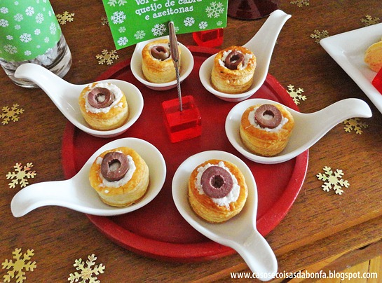 Outro petisco super fácil de fazer é o vol-au-vent com recheio de queijo de cabra e azeitonas… vamos conferir?