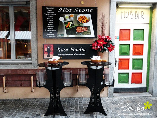 No Alexi´s Bar, vimos mais uma daquelas interessantes mesas coletivas para fondue que ficam na parte externa dos restaurantes e mostrei antes NESSE POST.