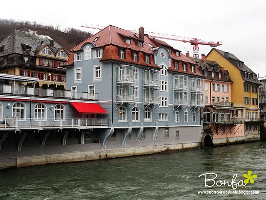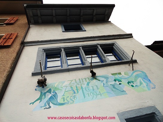 Adorei a fachada dessa casa que, de tão fofa, parece ter saído de um desenho animado!!!! Vocês repararam no desenho da marquise? Vimos muitos exemplos como esse em Zurique e Baden. Por isso, quando viajo gosto de olhar pra cima, pra baixo e pra todos os lados… nunca se sabe quais serão as surpresas que descobriremos com um olhar mais atento.