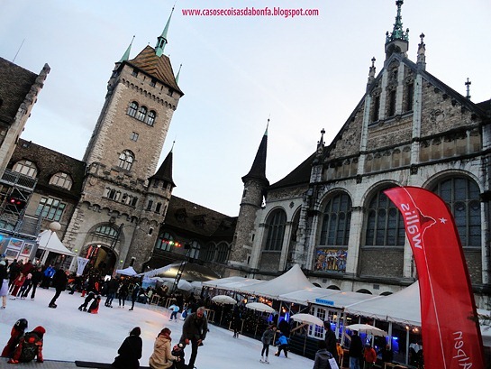 No fim da tarde, quando voltávamos para o hotel a fim de encontrar nossos amigos suíços, passamos pelo Schweizerisches Landesmuseum (Museu Nacional da Suíça). Não havia tempo para visitar o museu em si, mas ficamos felizes por poder contemplar a linda construção do lado de fora e entrar no pátio principal, que abrigava uma pista de patinação no gelo. Se algum dia eu voltar a Zurique, gostaria de conhecer o acervo do Museu Nacional, do qual fazem parte diversos artefatos, móveis, vestimentas, peças decorativas etc. de todos os períodos da história do país e ainda há uma sala inteiramente dedicada à Idade Média.