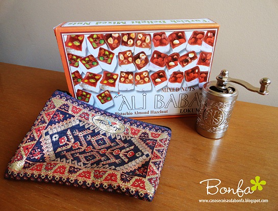 Agora vamos ao concurso? Preparados para responder às perguntas? Os prêmios são os três itens da foto acima: uma caixa de Turkish Delights, famoso doce típico com pistaches, amêndoas e avelãs; um porta-moedas em tecido decorado com motivos tradicionais e um moedor de pimenta.
